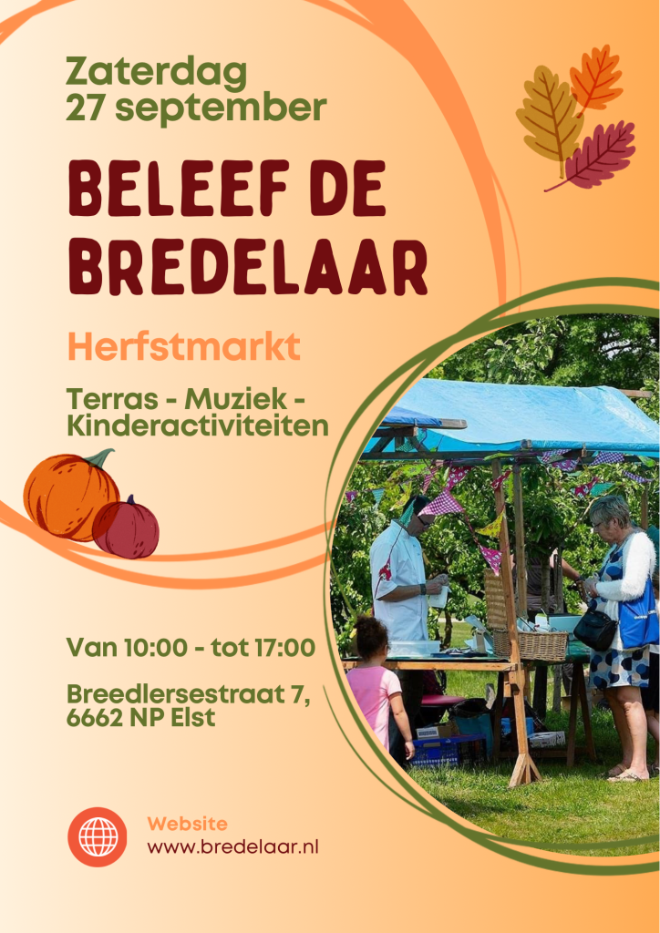 Zaterdag 27 september Beleef de Bredelaar in Elst 10.00u – 17.00u